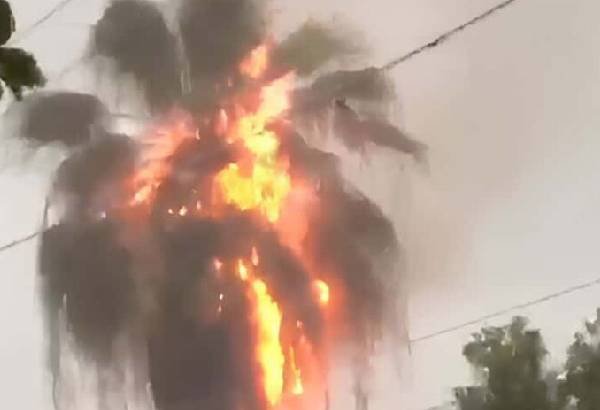Nacionales Rayo impacta palmera, la incendia y una parte en llamas cae sobre una casa, provocando un siniestro