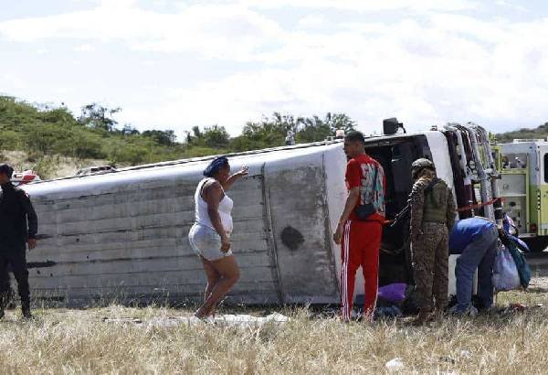 Nacionales Muere una persona y seis resultan heridas tras volcadura de autobús en circunvalación de Baní