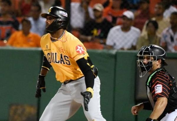 Las Águilas atacaron con cuatro carreras a Kilomé después de dos outs en la primera entrada. Carter Jensen negoció boleto y, luego de que Leody Taveras falló con línea al bosque derecho, avanzó a la antesala por sencillo de Aderlin Rodríguez por el campocorto. Le siguió Emmanuel Rodríguez con sencillo empujador al jardín derecho y Aderlin llegó a la tercera base. Emmanuel se fue al robo y un tiro errático del receptor Mike Gasper permitió a Aderlin anotar la segunda vuelta. A seguidas, Juan Lagares pegó doble remolcador al prado izquierdo y anotó él mismo tras sencillo impulsador de Raynel Delgado por el centro del cuadro. Águilas 4, Toros por batear.