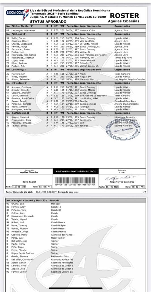 Sin embargo el partido fue puesto bajo protesta por el dirigente de los Toros, Víctor Estévez, al detectar que, en efecto, las Águilas inscribieron a nueve jugadores importados en el roster oficial, lo que viola el acapite 30 del reglamento de juego de la Lidom. Este establece que el límite de peloteros extranjeros que puede actuar en un partido es de ocho.