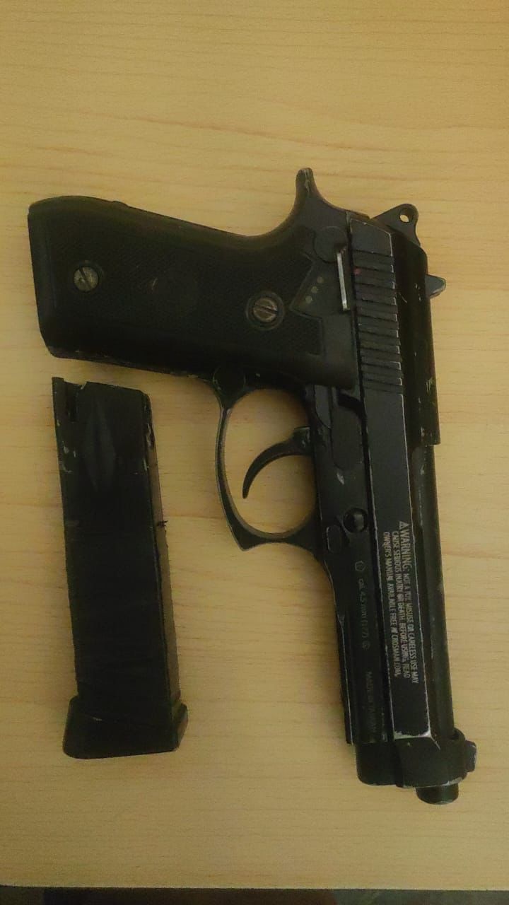 También se les ocupó la motocicleta Haojue Xpress, color azul, utilizada por el grupo para cometer los atracos. Así como un arma de fuego tipo pistola de fogueo, marca PFAM9B, serie 21A25831, calibre 4.5 mm.