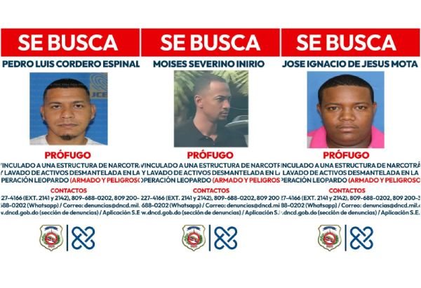 El Ministerio Público y la Direccion Nacional de Control de Drogas (DNCD) emitieron este domingo una alerta de búsqueda y captura contra tres hombres, señalados como cabecillas de una red de narcotráfico internacional y lavado de activos, desmantelada a través de la Operación Leopardo.