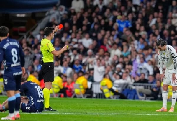 El defensor Carreras fue expulsado en el tiempo de descuento en la derrota en casa del Madrid por 2-0 contra el Celta de Vigo. Los locales terminaron con nueve hombres debido a que Fran García ya había visto la tarjeta roja.