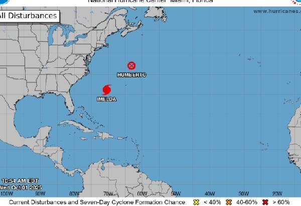 El huracán Imelda se aproxima este miércoles a Bermudas, mientras que Humberto, que bajó a categoría 1, sigue afectando con fuerte oleaje y corrientes de resaca la costa este de Estados Unidos, informó el Centro Nacional de Huracanes (NHC) de Estados Unidos.
