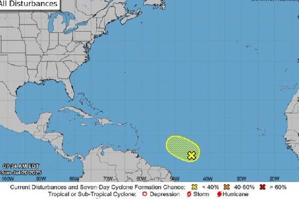 “Seguimos vigilando una onda tropical asociada a un sistema de baja presión ubicada al este/sureste de las Antillas Menores. La cual posee una probabilidad de 10 % de alcanzar la categoría de ciclón tropical en las próximas 48 horas”, informó la entidad a través de sus redes sociales.