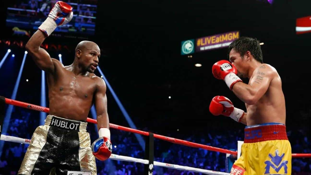 Sobre el cuadrilátero, Mayweather volvió a demostrar su característico estilo defensivo y su precisión técnica, controlando el ritmo del combate con su experiencia y lectura del rival.