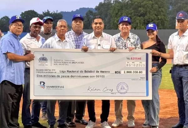 El ministro de Deportes, Kelvin Cruz entregó este viernes un aporte de dos millones de pesos a la Liga de Béisbol de Verano, que organiza la Federación Dominicana de Béisbol (Fedom).