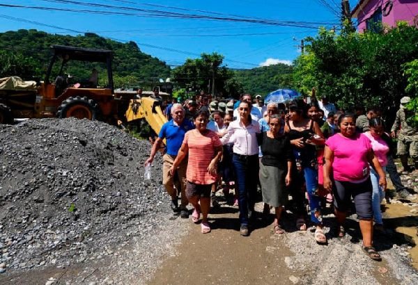 Luego, visitó el municipio de La Ceiba, Puebla, donde informó que agentes del Ejército y la Marina apoyan con cocinas comunitarias y una planta potabilizadora para atender 10.000 damnificados.