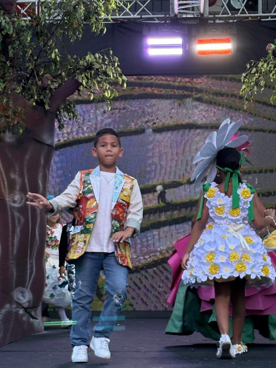 Durante el evento, los alumnos desfilaron en una pasarela luciendo originales atuendos elaborados con materiales reciclables como papel, cartón, plástico, fundas y otros elementos reutilizados. Cada diseño reflejó no solo ingenio y estilo, sino también un mensaje claro sobre la importancia de cuidar el medio ambiente y reducir los desechos.