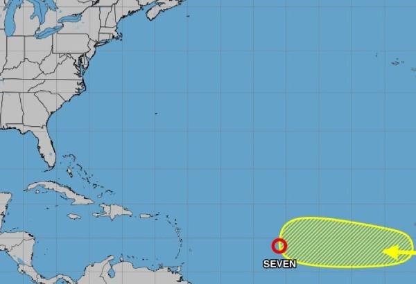 El Centro Nacional de Huracanes (NHC, por sus siglas en inglés) informó este miércoles la formación de la Depresión Tropical No. 7 sobre el Atlántico central. El sistema se localiza en la latitud 13.7 Norte y longitud 45.9 Oeste, a unos 1,905 kilómetros al este/sureste de las islas de Sotavento, en las Antillas Menores, con vientos máximos sostenidos de 55 km/h y movimiento hacia el oeste a unos 20 km/h.