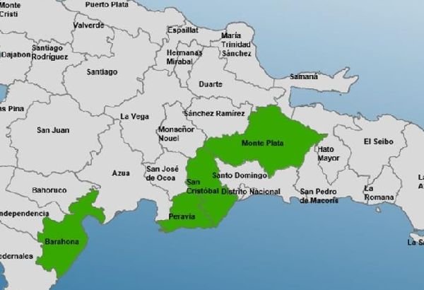 El Centro de Operaciones de Emergencias (COE) informó que únicamente las provincias Monte Plata, Peravia, San Cristóbal y Barahona permanecen en alerta verde, debido a la posibilidad de inundaciones repentinas o urbanas, crecidas de ríos, arroyos y cañadas.