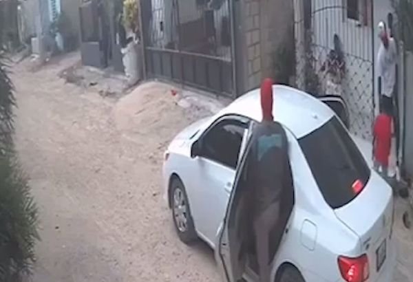 En un video que circula en las redes sociales, se observa el momento en que dos de los tres hombres se desmontan del vehículo y se dirigen hasta donde se encuentran los menores, a quienes sorprenden y despojan de sus pertenencias personales.