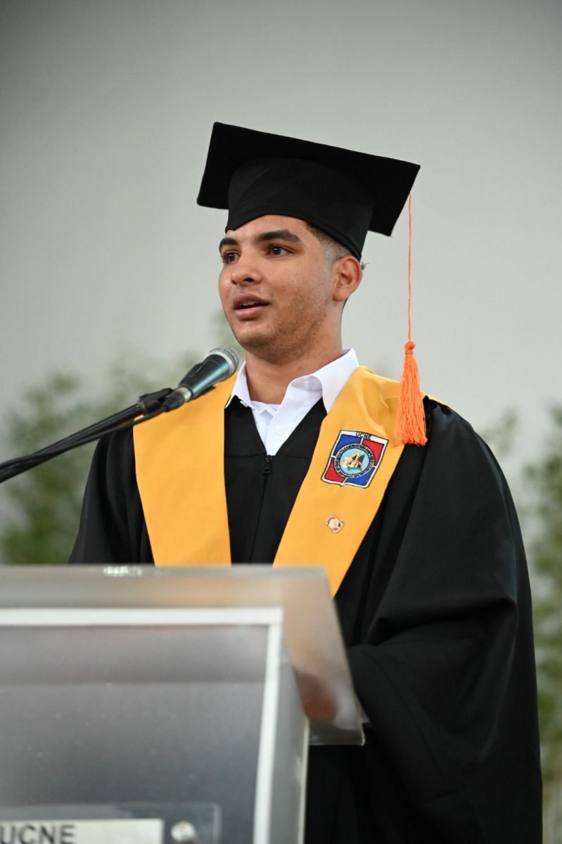 Las palabras de gratitud estuvieron a cargo de Jean Marcos Valdez Cascante, licenciado en Contabilidad, summa cum laude, quien expresó agradecimiento a los maestros, familiares y a la UCNE, por ser guía y apoyo durante el proceso formativo.